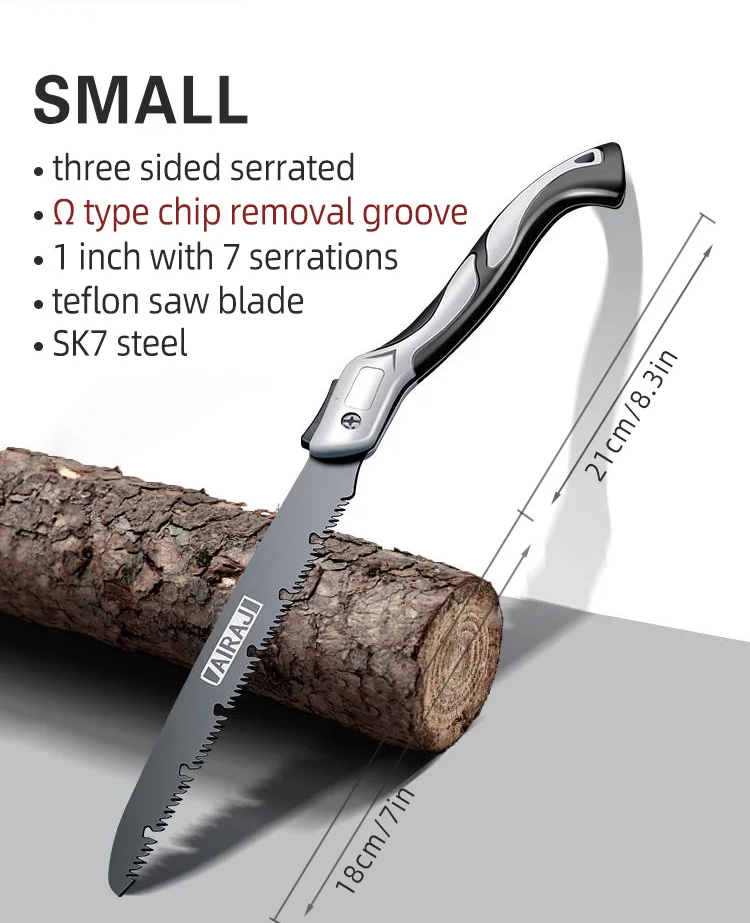 - Precision-Engineered Sharp Serrations: The saw's teeth are meticulously designed for optimal cutting performance. With razor-sharp serrations, it glides through wood, branches, and small logs effortlessly.